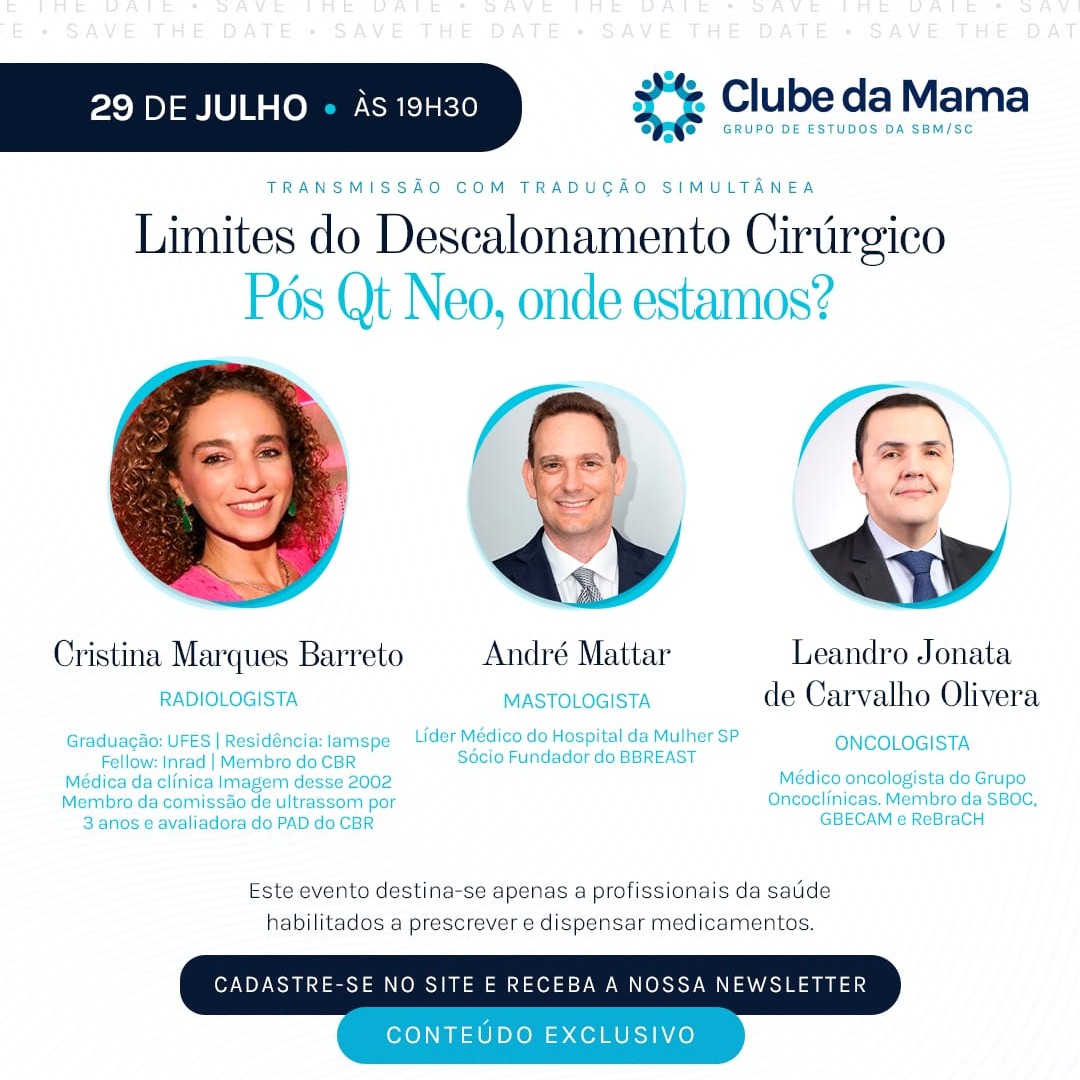 Acompanhe as próximas reuniões do Clube da Mama, o grupo de estudos da Sociedade Brasileira de Mastologia Regional de Santa Catarina. Participe das nossas reuniões e transmissões ao vivo.